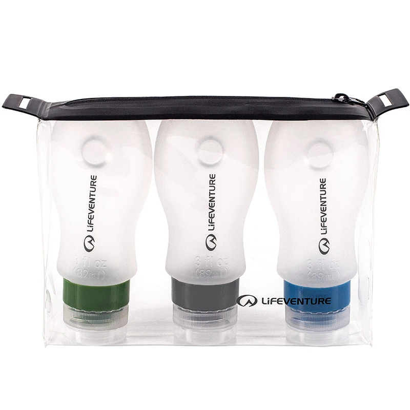 Lifeventure Silicon Bottle Set: cestovní sada lahviček vhodná do letadla. Sada splňuje požadavky pro leteckou dopravu. Lahvičky jsou barevně rozlišené pro lepší přehled. Dodáváno v průhledném obalu.