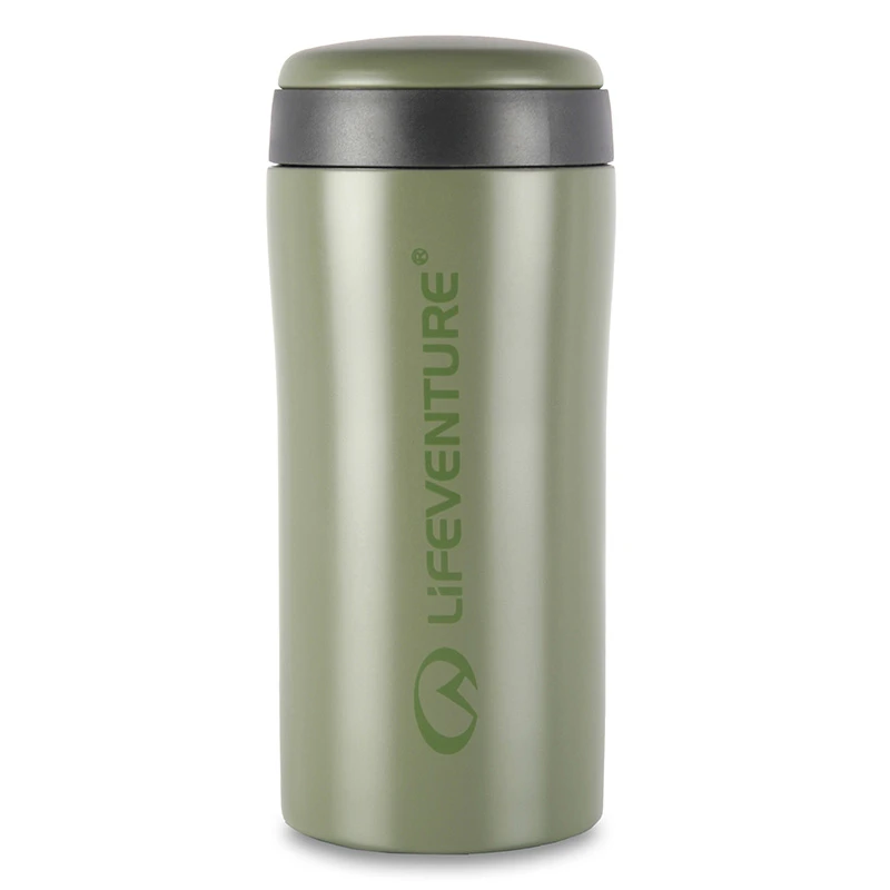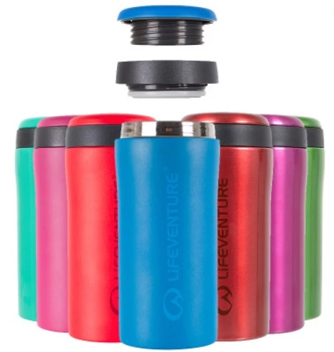 Lifeventure Thermal Mug: dvouplášťový thermohrnek o objemu 300 ml který udrží nápoj teplý až 6 hodiny a studený 12 hodin. Hrnek je vyrobený nerezové oceli. Pro lepší izolací je vnitřní plášť zvnějšku potažený měděnou vrstvou. Víčko je vybaveno tlakovým ventilem.