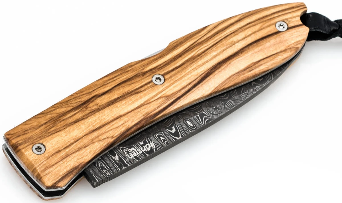 Rukojeť je olivového dřeva. Je pěkná na pohled i příjemná do ruky. Má však klasické negativa dřevo, nemůže být ve vlhku, je potřeba se o ní starat.