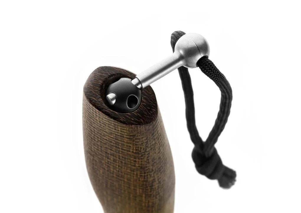 Tento EDC (Everyday Carry) nůž se pyšní čepelí z oceli M390, která je usazena v masivní rukojeti pomocí 3D CNC frézovaného titanového chrániče. BÖHLER M390 je martenzitická chromová ocel vyrobená metodou práškové metalurgie. Vyznačuje se především extrémně vysokou odolností proti opotřebení a velmi dobrou odolností proti korozi což z ní činí vynikající materiál vhodný k výrobě speciálních a zakázkových nožů, kde jsou kladeny vysoké nároky na kvalitu použitého materiálu. Tato ocel je navíc velice houževnatá, dobře se obrábí a leští, je rozměrově stálá. Dosahovaná tvrdost po zakalení je 58-62 HRC, při kryogenním tepelném zpracování lze dosáhnout i 63 HRC. Titan je lehký, pevný, lesklý kov ocelového vzhledu, odolný vůči korozi (i v mořské vodě nebo v kyselinách). Titan se používá jako složka pevných a lehkých slitin. Na rukojetích nožů nejčastěji najdete slitinu titanu s hliníkem a vanadem (90% Ti, 6% Al, 4% V). Používá se především u exkluzivních zavíracích nožů. Velkou výhodou titanu je nízká hmotnost a to, že materiál je "teplý" na dotek i při nízkých teplotách. Nevýhodou je vyšší cena a náchylnost na poškrábání.