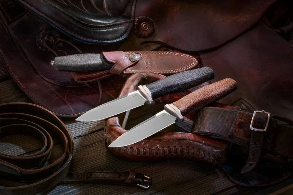 Rukojeť z mikarty Burlap, dostupná ve třech variantách, byla navržena pro ergonomii a maximální komfort při jakémkoli úchopu. Tato konkrétní verze má rukojeť z materiálu mikarta v zeleném provedení, kde barva osciluje mezi zelenou a hnědou. Micarta - materiál na stejné bázi jako G-10, avšak místo skelných vláken se používá tkanina, nejčastěji lněná. Rovněž vlastnosti Micarta jsou velmi podobné jako u G-10. Je to velmi pevný, tvrdý a lehký materiál, příjemný na dotek. Zároveň dodává noži o něco elegantnější vzhled než jiné syntetické materiály.