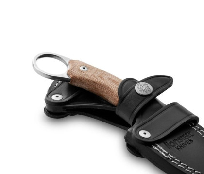 Rukojeť je u této verze vyrobena z jednoho kusu materiálu canvas přírodně hnědé barvy. Tím, že je rukojeť z jednoho kusu, tak dramaticky stoupá celková pevnost rukojeti. Canvas je pevný a odolný materiál, tradičně vyráběný z bavlny, lnu nebo konopí, ale dnes i ze směsi s polyesterem. Je známý svou vysokou pevností a trvanlivostí, což ho činí ideálním pro širokou škálu výrobků od pracovních oděvů, přes tašky a batohy, až po umělecká plátna pro malbu. Mezi jeho hlavní výhody patří také odolnost vůči opotřebení, možnost snadného barvení, a díky přírodnímu původu i recyklovatelnost. Nože LionSTEEL H2 jsou ideálními nástroji pro nošení při turistických výpravách a lovu, dokonce i pro vojenské účely jako záložní nože, snadno přenosné na každém druhu plného batohu. Speciální pouzdro umožňuje ať už vertikální, nebo horizontální nošení obou nožů, a to i na systémech M.O.L.L.E., v různých polohách a řešeních.