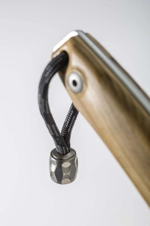 Rukojeť je u této verze vyrobena z olivového dřeva. Dřevo - tradiční materiál, který stále patří mezi nejpoužívanější na výrobu rukojetí nožů. Dřevěná rukojeť dodává noži přirozený a elegantní vzhled, rukojeti ze dřeva jsou příjemné na dotek. Nejpoužívanější typy dřeva jsou například buk (Opinel), bříza (skandinávské nože), dub, oliva, ořech, případně exotická dřeva jako bubinga, bocote, cocobolo nebo palisandr. Největší nevýhodou dřeva je náchylnost vůči vlhkosti, která se však dá zmenšit napuštěním v oleji (např. lněný olej).