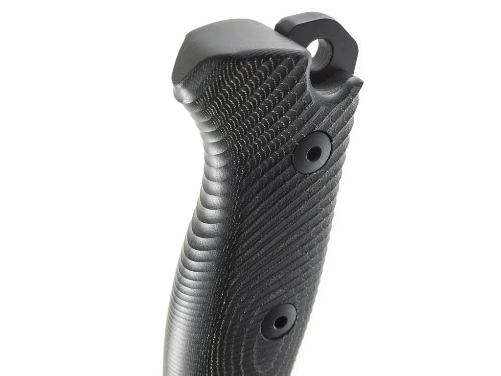 Jedná se o nůž s rukojetí vyrobenou technologií SOLID® knife (4osým frézováním jediného kusu materiálu) z černé Micarty, který tak umožňuje bezpečný a pevný úchop a zároveň zajišťuje maximální odolnost.