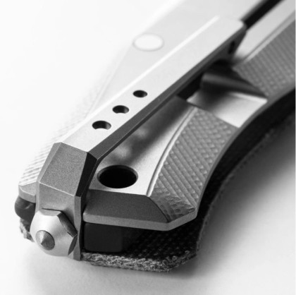 Je vybaven čepelí ze slinuté oceli M390 se saténovou povrchovou úpravou, která je vybavena systémem "ReF" (Removable Flipper System) a kuličkovým ložiskovým systémem Double Crown, který udržuje čepel stabilnější a zajišťuje plynulejší pohyb. Nerezová ocel BÖHLER M390 je martenzitická chromová ocel vyrobená metodou práškové metalurgie. Vyznačuje se především extrémně vysokou odolností proti opotřebení a velmi dobrou odolností proti korozi což z ní činí vynikající materiál vhodný k výrobě speciálních a zakázkových nožů, kde jsou kladeny vysoké nároky na kvalitu použitého materiálu. Tato ocel je navíc velice houževnatá, dobře se obrábí a leští, je rozměrově stálá. Dosahovaná tvrdost po zakalení je 58-62 HRC, při kryogenním tepelném zpracování lze dosáhnout i 63 HRC.