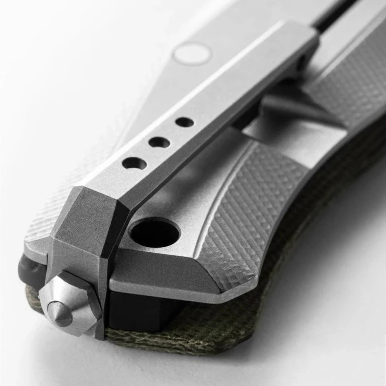 Je vybaven čepelí ze slinuté oceli M390 se saténovou povrchovou úpravou, která je vybavena systémem "ReF" (Removable Flipper System) a kuličkovým ložiskovým systémem Double Crown, který udržuje čepel stabilnější a zajišťuje plynulejší pohyb. Nerezová ocel BÖHLER M390 je martenzitická chromová ocel vyrobená metodou práškové metalurgie. Vyznačuje se především extrémně vysokou odolností proti opotřebení a velmi dobrou odolností proti korozi což z ní činí vynikající materiál vhodný k výrobě speciálních a zakázkových nožů, kde jsou kladeny vysoké nároky na kvalitu použitého materiálu. Tato ocel je navíc velice houževnatá, dobře se obrábí a leští, je rozměrově stálá. Dosahovaná tvrdost po zakalení je 58-62 HRC, při kryogenním tepelném zpracování lze dosáhnout i 63 HRC.