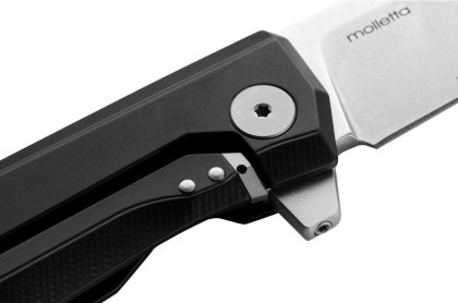 Je vybaven čepelí ze slinuté oceli M390 s povrchovou úpravou stone washed, která je vybavena systémem "ReF" (Removable Flipper System) a kuličkovým ložiskovým systémem Double Crown, který udržuje čepel stabilnější a zajišťuje plynulejší pohyb. Nerezová ocel BÖHLER M390 MICROCLEAN je martenzitická chromová ocel vyrobená metodou práškové metalurgie. Vyznačuje se především extrémně vysokou odolností proti opotřebení a velmi dobrou odolností proti korozi což z ní činí vynikající materiál vhodný k výrobě speciálních a zakázkových nožů, kde jsou kladeny vysoké nároky na kvalitu použitého materiálu. Tato ocel je navíc velice houževnatá, dobře se obrábí a leští, je rozměrově stálá. Dosahovaná tvrdost po zakalení je 58-62 HRC, při kryogenním tepelném zpracování lze dosáhnout i 63 HRC.