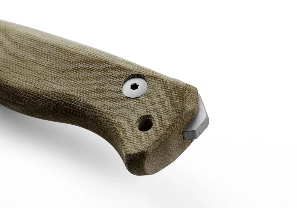 Rukojeť typu SOLID® je vyfrézovaná z jednoho kusu zeleného canvasu, což zajišťuje pevný a bezpečný úchop. Canvas je pevný a odolný materiál, tradičně vyráběný z bavlny, lnu nebo konopí, ale dnes i ze směsi s polyesterem. Je známý svou vysokou pevností a trvanlivostí, což ho činí ideálním pro širokou škálu výrobků od pracovních oděvů, přes tašky a batohy, až po umělecká plátna pro malbu. Mezi jeho hlavní výhody patří také odolnost vůči opotřebení, možnost snadného barvení, a díky přírodnímu původu i recyklovatelnost. Otvor v zadní části rukojeti umožňuje provlečení poutka.