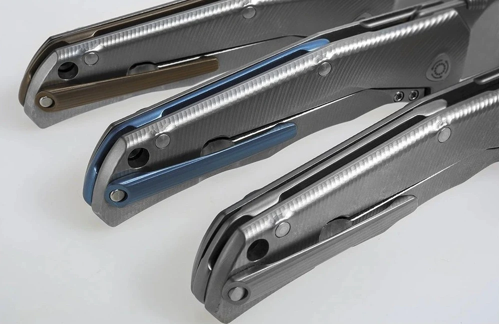 Rám, klip a spacer jsou vyrobeny z titanu 6AI4V, střenka je u této verze z jednoho kusu karbonu. Titan je lehký, pevný, lesklý kov ocelového vzhledu, odolný vůči korozi (i v mořské vodě nebo v kyselinách). Titan se používá jako složka pevných a lehkých slitin. Na rukojetích nožů nejčastěji najdete slitinu titanu s hliníkem a vanadem (90% Ti, 6% Al, 4% V). Používá se především u exkluzivních zavíracích nožů. Velkou výhodou titanu je nízká hmotnost a to, že materiál je "teplý" na dotek i při nízkých teplotách. Nevýhodou je vyšší cena a náchylnost na poškrábání. Střenka z karbonu je rukojeť nože (střenka) vyrobená z uhlíkových vláken (karbonu). Jde o materiál složený z pevných uhlíkových vláken spojených dohromady, často s použitím pryskyřice. Tento materiál je oblíbený pro svou nízkou hmotnost a vysokou pevnost a tuhost, díky čemuž je vhodný pro výrobu kvalitních a odolných nožů.