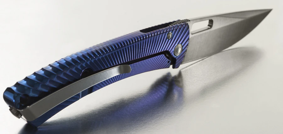 Střenka je vyrobena na CNC stroji z jednoho kusu hliníkové slitiny, která je vroubkovaná. Neklouže tolik a dobře se drží. Je na ní klip pro připevnění na kapsu. Na konci je ocelový hrot na rozbití skla.