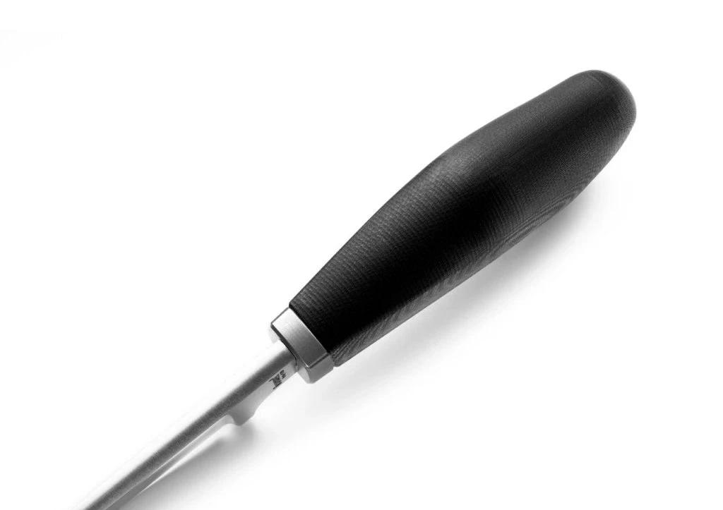 Objímka před rukojetí je vytvořena z ušlechtilého titanu. Ergonomický tvar rukojeti dokonale padne do dlaně, což umožňuje velmi přesnou a bezpečnou manipulaci.