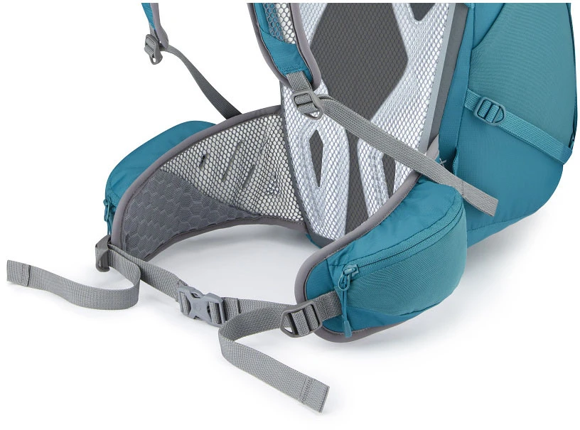 RAB Aeon ND 33: má zádový systém uzpůsobený dámské anatomii, má upravené ramenní popruhy, ty jsou i blíže u sebe, má také kratší záda.