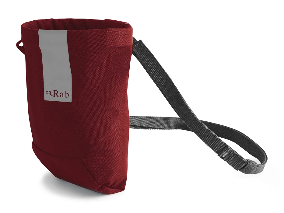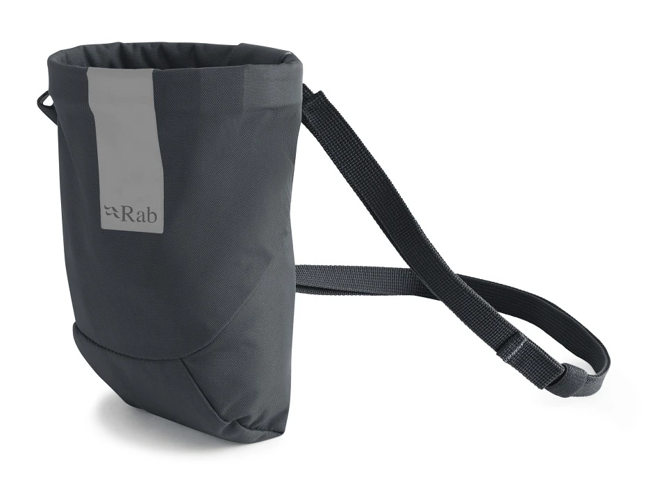 Rab Chalk Bag: pytlík na magnézium se stahovacím uzávěrem a elastickým držákem na kartáček. Pásek je součástí.