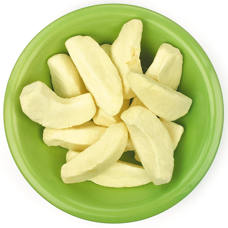 Lyofood jablko: Lyofilizované (mrazem sušené) krájené jablko bez přidaného cukru, barviv a konzervantů.