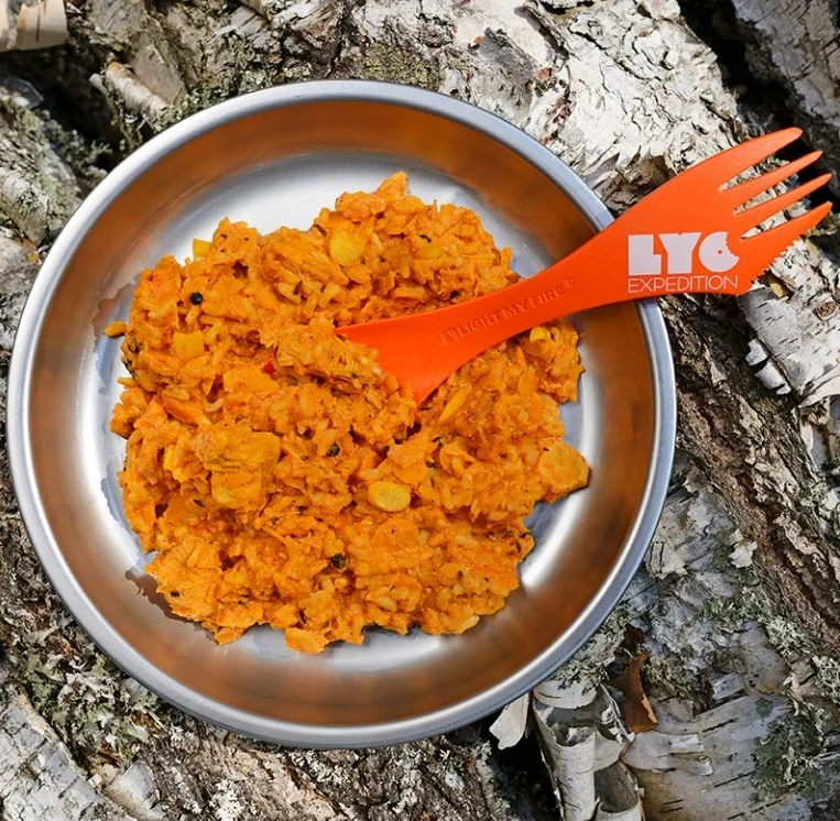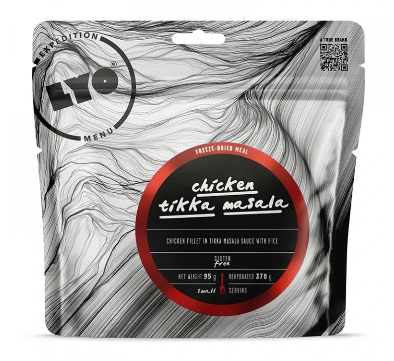 Lyofood Kuřecí Tikka Masala: je kuřecí s rýží na indický způsob, je lyofilizované hlavní jídlo. Na přípravu jsou použité 100% přírodní suroviny, jídlo je bez konzervačních látek. Vezmete si ho tam, kde je pro vás důležité, aby jídlo nezabralo příliš místa v batohu. Oceníte jeho nízkou hmotnost, rychlou přípravu a výbornou chuť. Je to plnohodnotná strava na cesty.