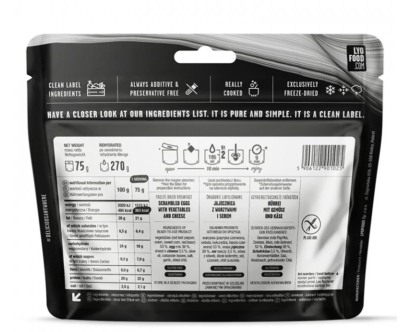 Pokrm využijete na cestách, výhodou je nízká váha a rychlá příprava. Jídlo je baleno ve speciálním hliníkovém obalu, díky němuž neztrácí chuť, barvu ani výživné hodnoty. Lyofood používá 100% přírodní a čerstvé suroviny.