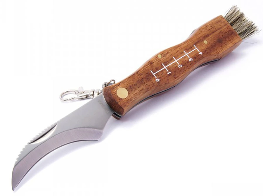 Mam 2591 houbařský nůž: zavírací houbařský nůž se štětečkem na očištění hub. Dřevěná rukojeť je vyrobená z buku a je impregnovaná, aby co nejlépe odolávala vlhkosti. Čepel z nerezová oceli 420 je dlouhá 7,5 cm. Nůž je dodáván s pouzdrem