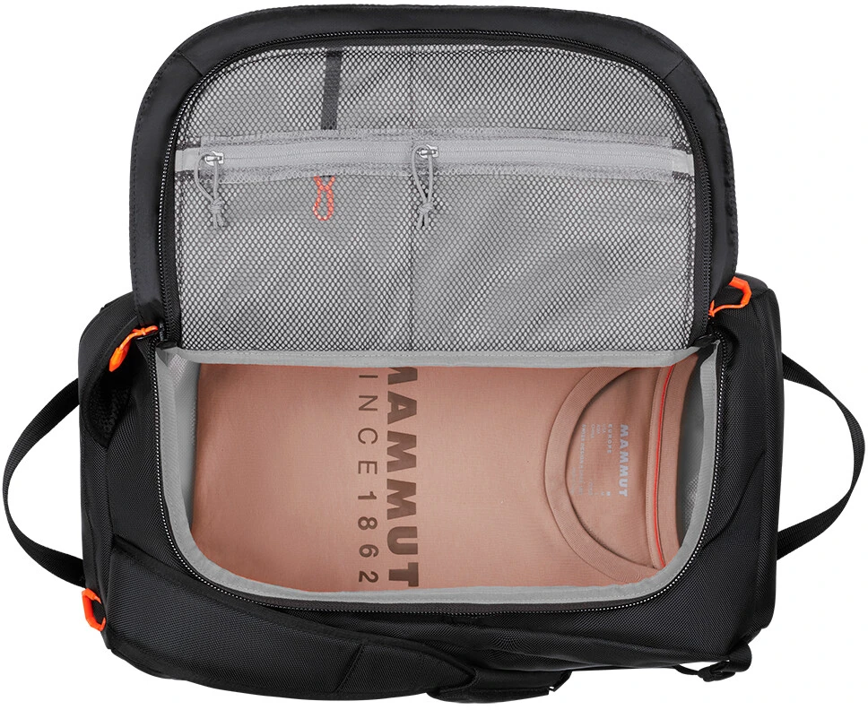 Mammut Cargon 40: prostorná cestovní taška kterou díky širokým anatomicky tvarovaným popruhů můžete nosit i jako batoh. Je vyrobená z ekologického nylonu EPO® a dno je odolné proti oděru.