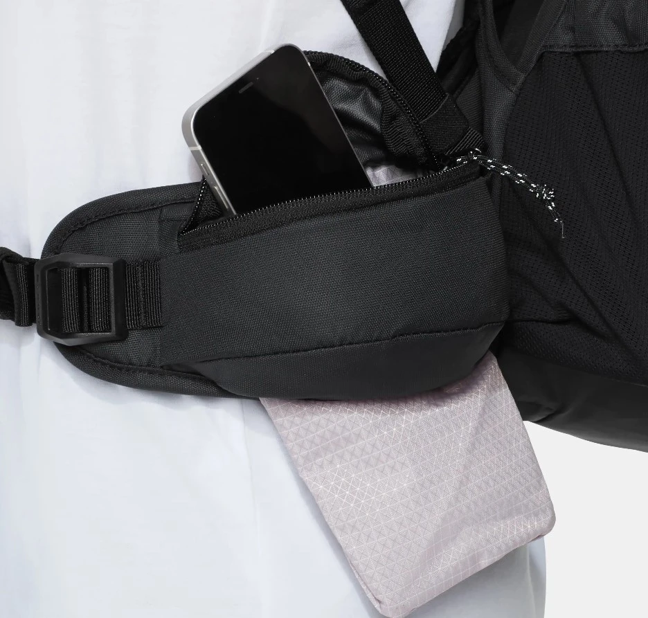 Batoh je kompatibilní s hydrovakem, má dvě kapsy na ramenních popruzích na drobnosti, rozkládací kapsu na zip na bederním pásu do které se vejde mobil a dvě boční kapsy na láhve, kapsy jsou dobře přístupné i za chůze. Dále na batohu najdete dostatečně velkou přední síťovanou kapsu třeba na bundu či pláštěnku. Poutka na přichycení turistických hůlek, integrovaná, odnímatelná pláštěnka.