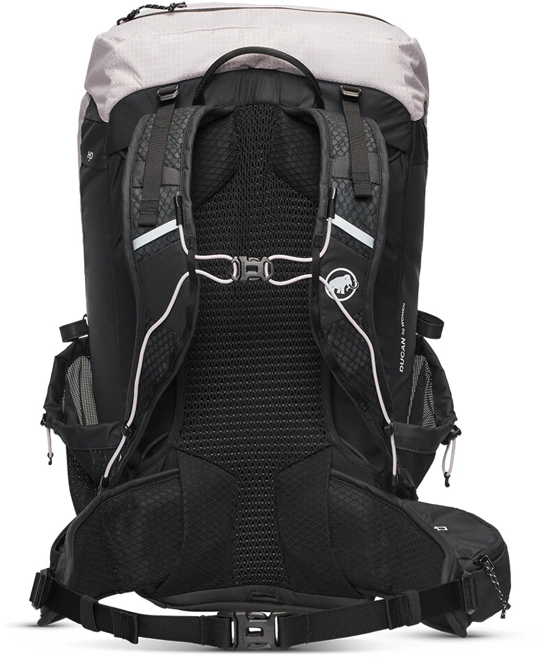 Mammut Ducan 32 Women: lehký turistický batoh o objemu 32 litrů přizpůsobená dámské postavě. Hodí se na jednodenní turistiku, na Ferraty. Polstrovaná a dobře odvětraná síťová záda, pohodlný anatomicky tvarovaný bederní pás a a nastavitelný hrudní pás zajistí maximální pohodlí i při náročných túrách.