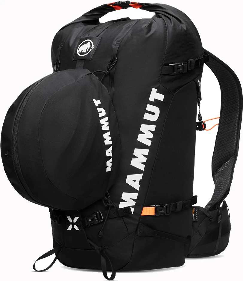 Mammut Helmet Holder Pro: držák na helmu se zipem. Pomocí čtyř upevňovacích háčků ho snadno připevníte k batohu. Lze využít i jako obal, když helmu zrovna nepoužíváte.