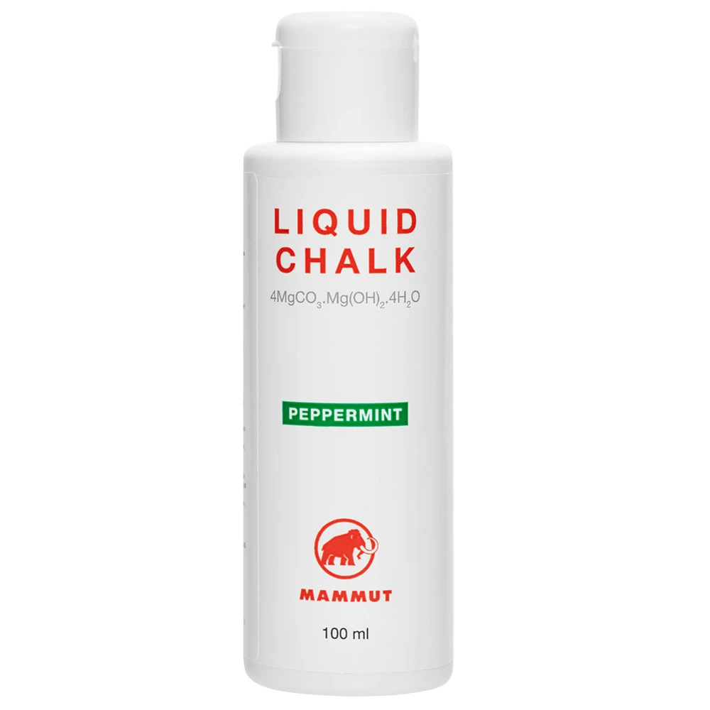 Mammut Liquid Chalk Peppermint 100 ml – je tekuté magnézium s mentolovou vůní, které se hodí na lezení a bouldering. Má objem 100 ml. Ideální pro bouldrovky, kde řešíte problém vysoké prašnosti.