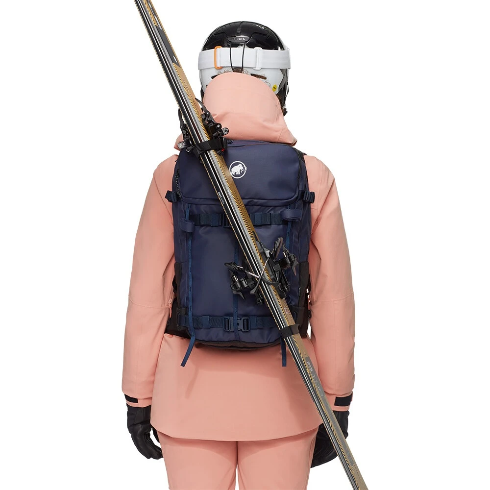 Mammut Nirvana 28 Women - batoh od značky Mammut je o pár litrů větší ségra legendárního parťáka z Nirvana rodiny, který také nabízí skvělou výbavu pro zimní sporty. Optimalizovaný nosný systém a střih vyhovující dámským proporcím je ideální volba slibující lehkost i rychlost pohybu. Ramenní popruhy dámského střihu zlepšují komfort nošení, upravený bederní pás i kratší délka zad zaručí maximální pohodlí a volnost. A když jsou před vámi lezecké pasáže, tak lyže nebo splitboard připevníte na batoh, buď diagonálně nebo ve tvaru A. S tímto batohem si užijete každou výpravu. Nabídne vám dostatek prostoru nejen pro náhradní oblečení, ale i zateplenou sukýnku. Samozřejmě se vejde i neodmyslitelná lékárnička nebo třeba čelovka. Do hlavní komory se dostanete jednoduše i přes zadní panel, navíc zip je po celém obvodu. A super je i kompatibilita s chráničem zad Mammut. O vaši bezpečnost je tak maximálně postaráno, ostatní je na vás a na počasí.