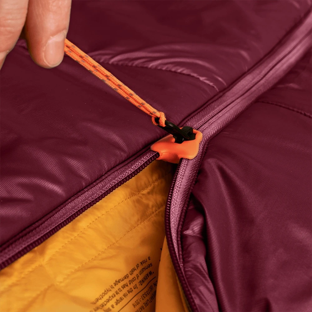 centrální (přední) zip umožňující účinnou regulaci teploty uvnitř spacáku