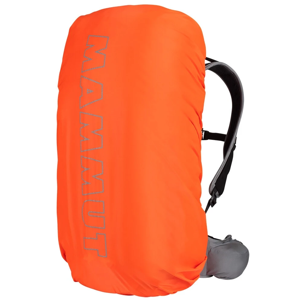 Mammut Raincover - pláštěnka Raincover od firmy Mammut zajistí perfektní ochranu vašemu batohu při deštivém počasí. Pláštěnka je vyrobena z jednoho kusu materiálu se švy pouze na okrajích. Připevnit pláštěnku lze na stranách, uprostřed a nahoře. Odolný polyamid ochrání proti dešti. Reflexní logo zvýší vaši bezpečnost při zhoršené viditelnosti.