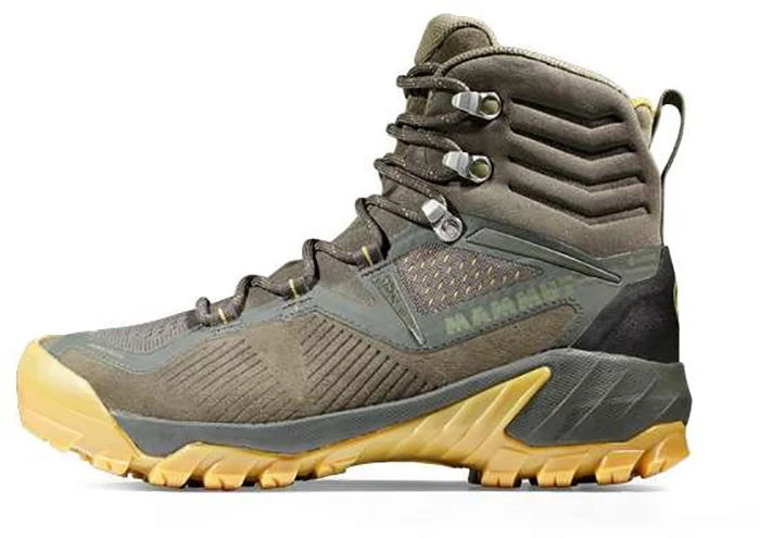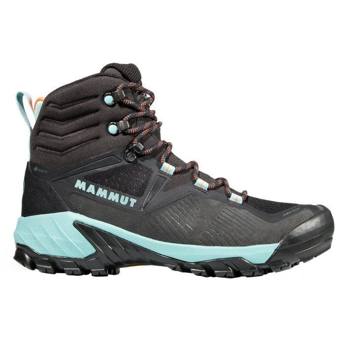 Mammut Sapuen High GTX Women – jsou dámské, turistické boty s vysokým komfortem a se solidní podporou kotníku. Mají moderní designové prvky. Jsou vyrobené z kombinace textilu a kůže, jsou relativně prodyšné. Jsou určené pro hory typu Krkonoše, Šumava, ale hodí se i do vyšších hor.