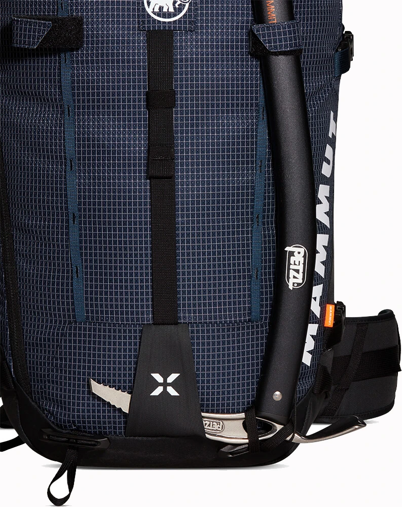 Boční kompresní popruhy. Možnost upevnění trekových holí, cepínů, lana, lyží. Batoh má velké síťované kapsy na ramenním popruhu, přihrádku na lavinovou výbavu, je kompatibilní s hydrovakem.
