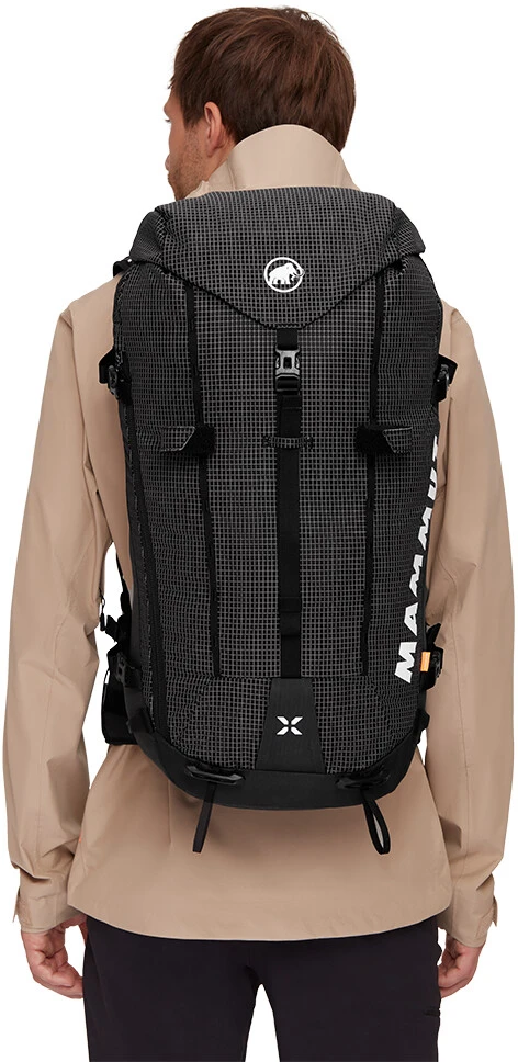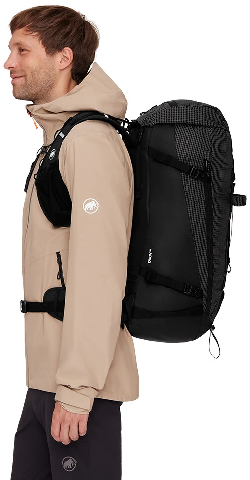 Mammut Trion 38: všestranný batoh s rolovacím uzávěrem a víkem, které jde v případě potřeby sundat. Do batohu je ještě boční vstup na zip. Objem je 38 litrů, batoh využijete na lezení, lyžařské túry, horolezectví, turistiku. Díky speciálnímu zádovému systému, anatomicky tvarovanému a polstrovanému bedernímu pásu a také ramenním popruhům je batoh velmi pohodlný, dobře sedí a nijak neomezuje v pohybu.