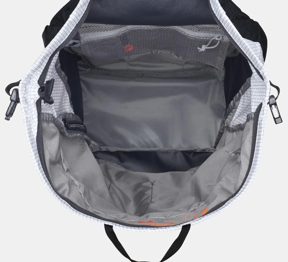 Boční kompresní popruhy. Možnost upevnění trekových holí, cepínů, lana, lyží. Batoh má velké síťované kapsy na ramenním popruhu, přihrádku na lavinovou výbavu, je kompatibilní s hydrovakem.