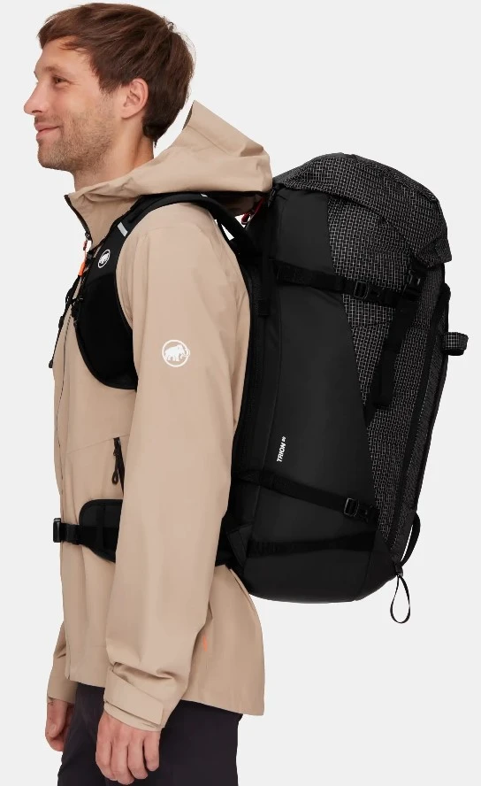 Mammut Trion 50: všestranný batoh s rolovacím uzávěrem a víkem, které jde v případě potřeby sundat. Do batohu je ještě boční a zadní vstup na zip. Objem je 50 litrů, batoh využijete na lezení, lyžařské túry, horolezectví, turistiku. Díky speciálnímu zádovému systému, anatomicky tvarovanému a polstrovanému bedernímu pásu a také ramenním popruhům je batoh velmi pohodlný, dobře sedí a nijak neomezuje v pohybu.