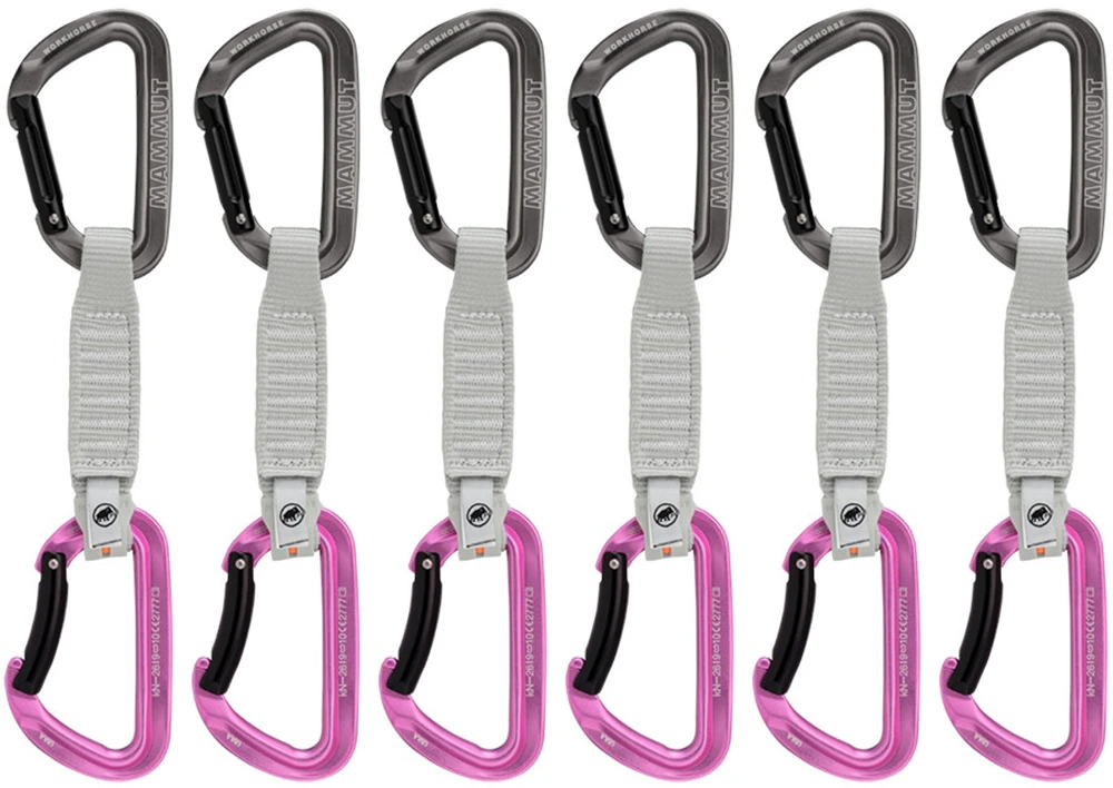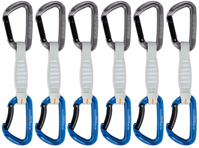 Mammut Workhorse Keylock 12 cm 6-Pack – jsou univerzální expresky určené pro sportovní lezení v převisech. Na karabinách mají klasický keylock, který se při vycvakávání cest nezachytává do nýtů.