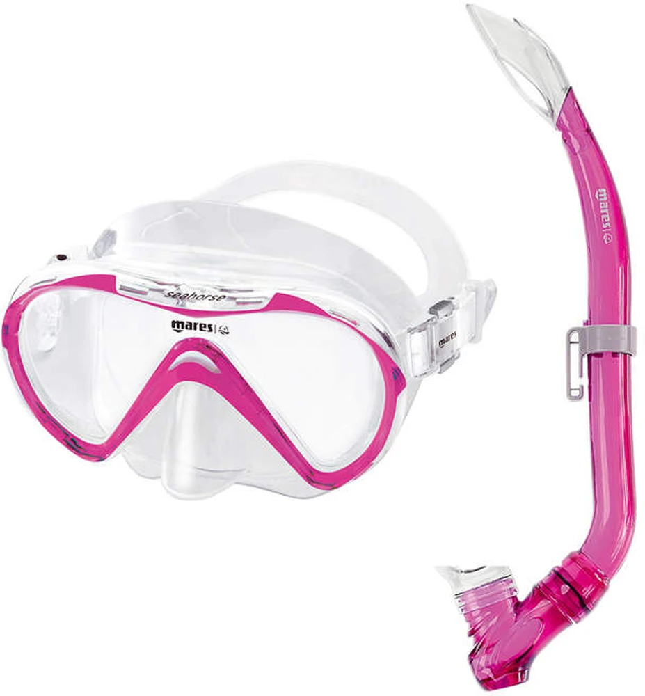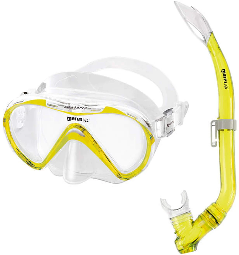 Mares Combo Seahorse - je startovací potápěčský set masky a šnorchlu vhodný pro děti 8-14 let. Potápěčská maska má lícnici vyrobenou ze siikonu, který zajistí nejlepší přilnavost. Má spojený zorník, který zajistí výborný výhled.