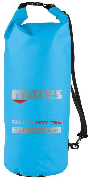 Mares Cruise Dry T25 - lehký a vodotěsný vodní vak určený potápění, vodáctví atd. Má objem 25 litrů. Má jednoduchý, ale velmi funkční rolavací uzávěr. Bytelný materiál. Nízká váha.