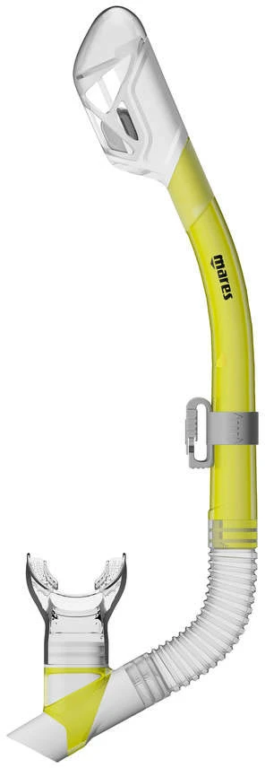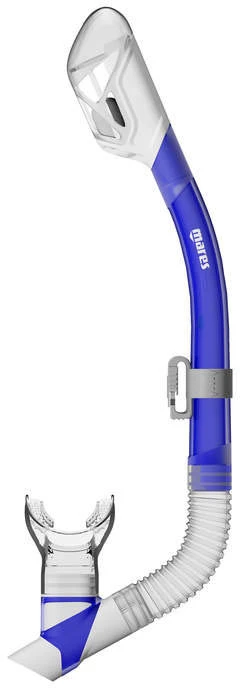 Mares Gator Dry – tkz. suchý šnorchl pro prázdninové potápění. Spodní ventil šnorchlu Mares Gator Dry vytlačuje případnou vodu, vrchní suchý ventil zamezuje její vniknutí do šnorchlu. Náústek anatomicky tvarovaný je vyrobený ze silikonu.