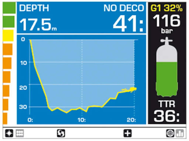 Můžete ho používat už při kurzu OWD, kdy oceníte jeho barevný display (velmi přehledný a výrazný), okamžitě uvidíte barevně zvýrazněné případné deco a pokud máte k dispozici lahovový modul, tak i stav vaší láhve a samozřejmě doporučenou délku ponoru v dané hloubce s bezpečným návratem na hladinu.