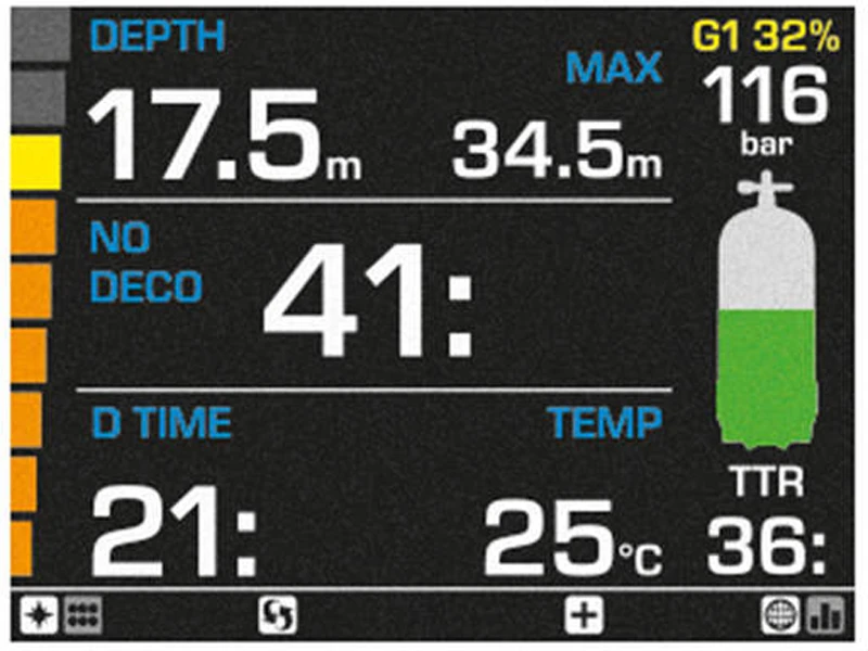 Pokud se vydáte v budoucnu směrem k technickému potápění, umožní vám potápění s nitroxem i trimixem. Možnost až pěti plynných směsí. Jde spárovat současně až k pěti lahvovým modulům (láhvové moduly nejsou součástí).