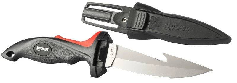 Potápěčský nůž Mares Force Plus – vhodný pro upevnění na žaket nebo na některou z končetin.