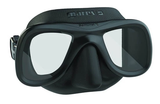 Maska pro spearfishing Mares Samurai X – velmi populární. Má se silikonovou lícnicí pro optimální přizpůsobení obličeji. Velice malý vnitřní objem. Dělené tvrzené sklo. Vhodná pro spearfishing a freediving.