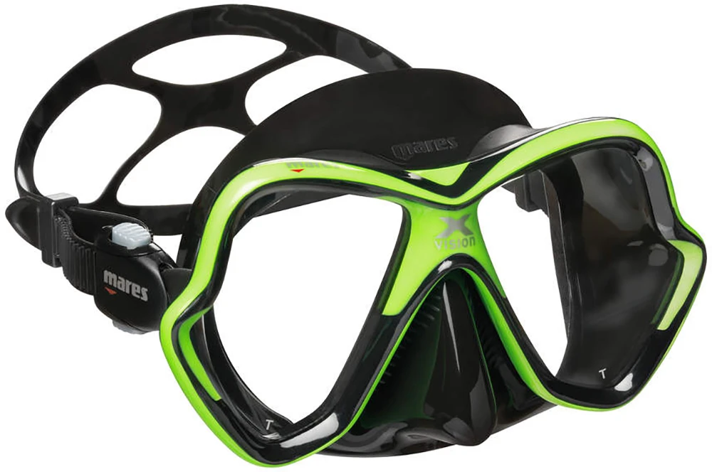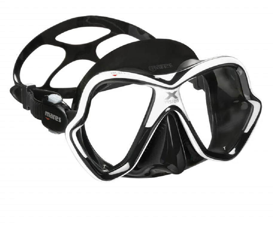 Mares X-Vision – potápěčská silikonová maska s vyjímečným výhledem pro potápění. Maska má tvrzené sklo, ve své třídě minimální vnitřní objem (105 cm3 ), velmi široké zorné pole, hmotnost 190g (jedna z nejlehčích na trhu).