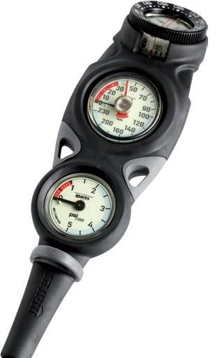 Mares Mission 3 – analogová potápěčská konzole s tlakoměrem, hloubkoměrem a kompasem je odolná proti nárazu. Jednoduché, ale zároveň variabilní provedení konzole.