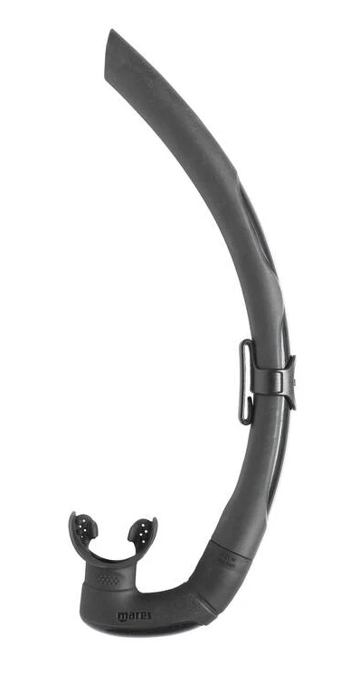 Šnorchl Mares Pro Flex: šnorchl je vyrobený ze dvou různě měkkých materiálů. První materiál je pružný a měkký, díky tomu lze šnorchl jednoduše složit a strčit do kapsy. Druhý materiál je pevnější a funguje jako opora, když šnorchl opět narovnáte a plavete s ním.
