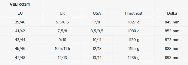 | Velikost | 39–40 / 41–42 / 43–44 / 45–46 |