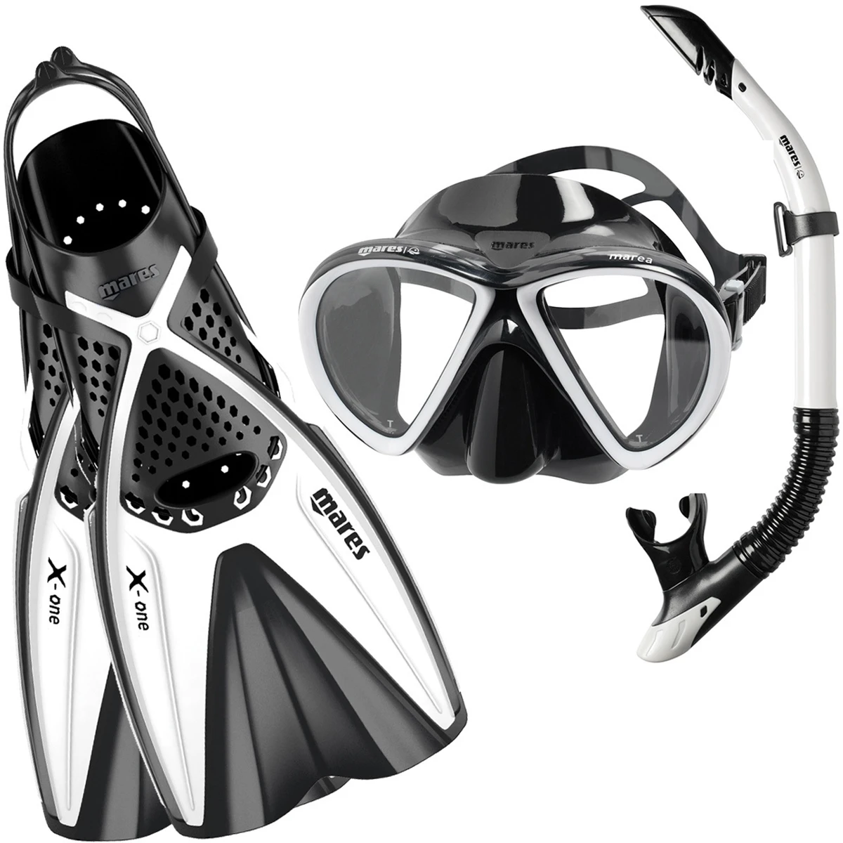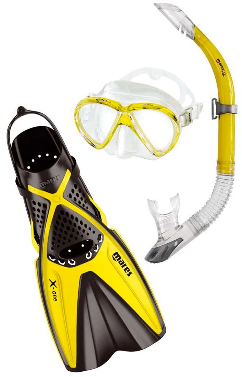 Mares Set X-One Marea - je zvýhodněný set pro šnorchlování u moře. Obsahuje univerzální ploutve, které můžete nastavit na různou velikost nohy. Ploutve jsou v moři základ, výrazně vám pomohou v překonávání vln nebo v plavání do hloubky.