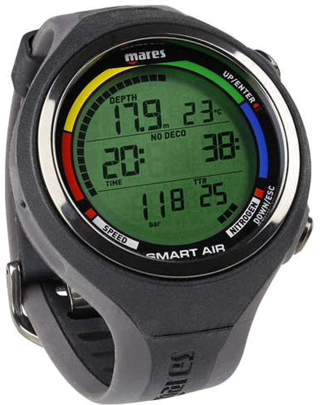Mares Smart Air – je mimořádně zajímavý tím, že se jedná o kompaktní potápěčský počítač v hodinkovém provedení, který může bezdrátově připojit lahvový modul. Díky tomu je velmi zajímavý pro někoho, kdo hodně cestuje za potápěním.