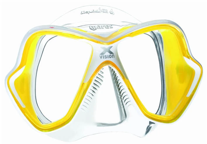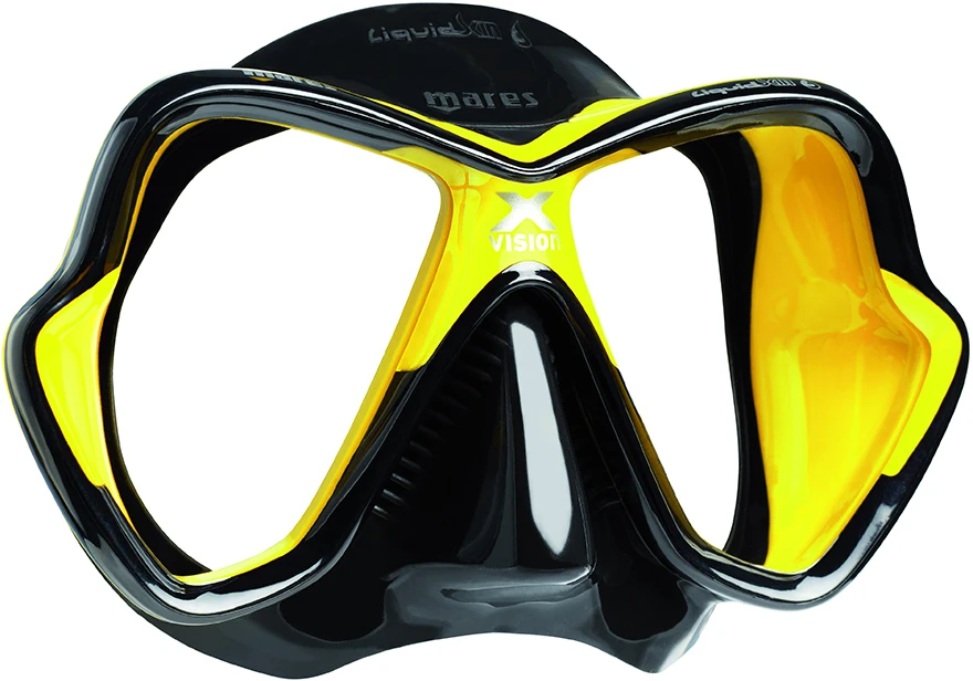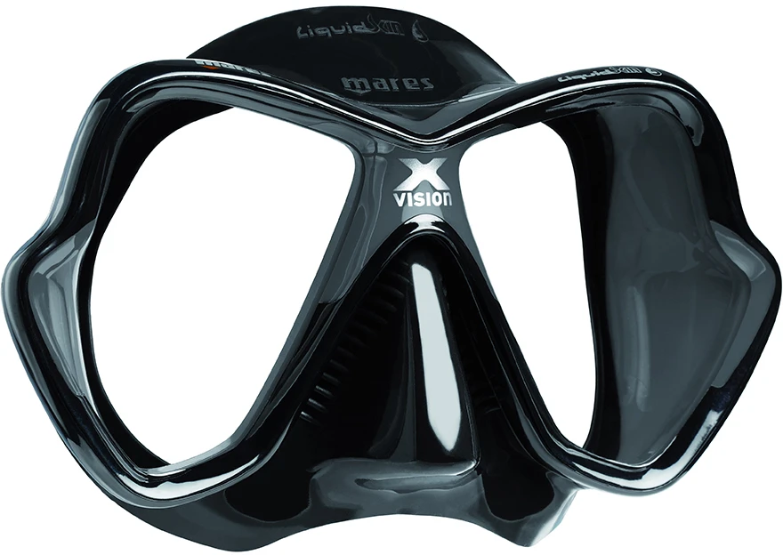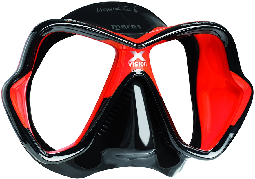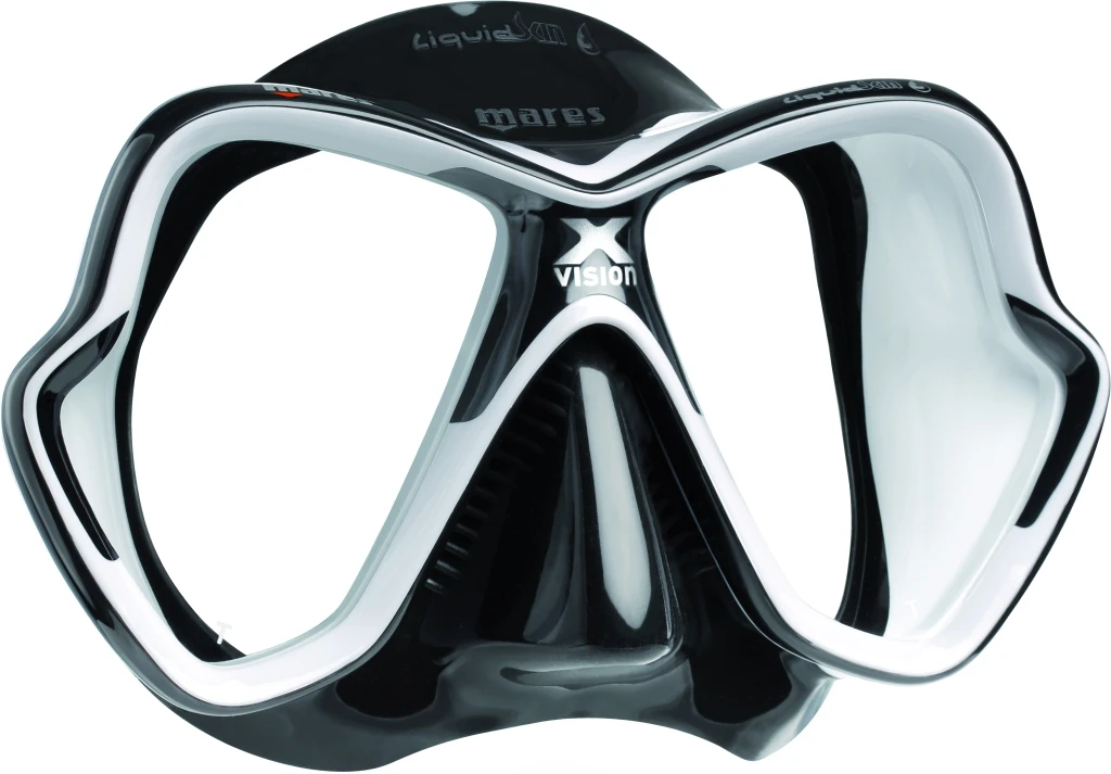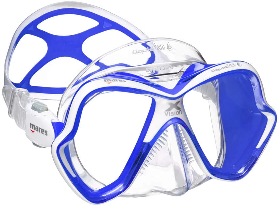 Potápěčská maska Mares X-Vision Ultra LiquidSkin – má se silikonovou lícnicí ze dvou druhů silikonů. Horizontální žebra u nosu. Výhled je zvětšený o 20%. Dělené tvrzené sklo, které je možné vyměnit za dioptrická skla.