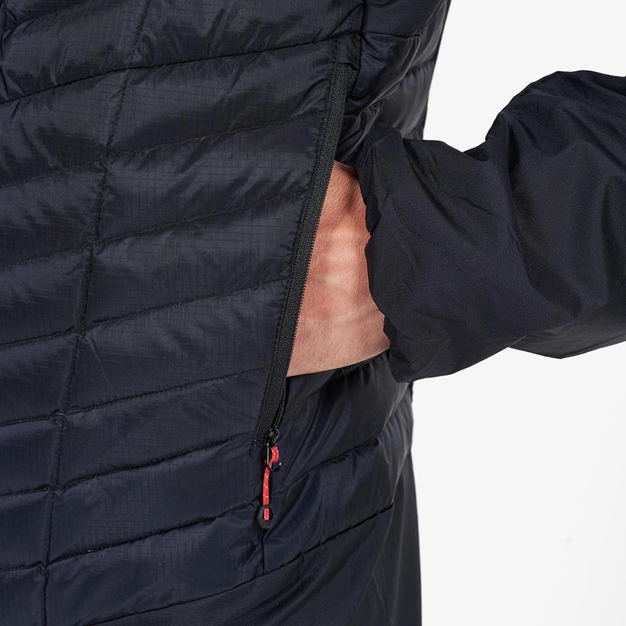 Izolace je kombinovaná, používá Polartec Alpha, který velmi rychle schne a je v podšívkou, má vysoký chlup, který udržuje u těla teplý vzduch Náplň je hydrofobní husí peří o plnivosti 800 cuins.